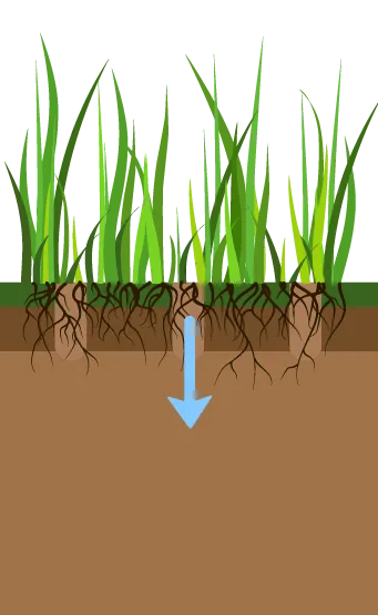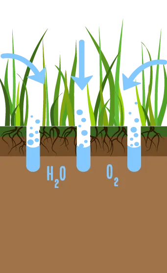 Standard mechanical aeration combined with irrigation water requires higher volume of water and costly course maintenance.