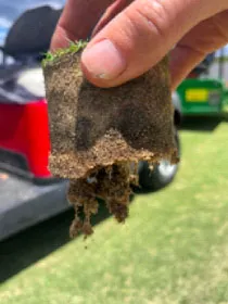Standard mechanical aeration combined with irrigation water requires higher volume of water and costly course maintenance.